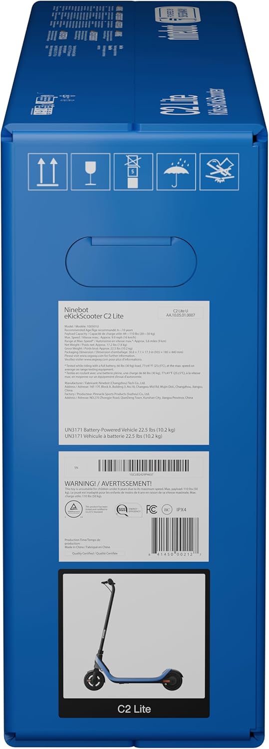 Segway Ninebot eKickScooter – Electric Scooter for Kids 6-14, w/t Adjustable Handlebar Height (Only C2 Pro) for Riders up to 132 lbs, Includes New Cruise Mode, UL-2272 Certified